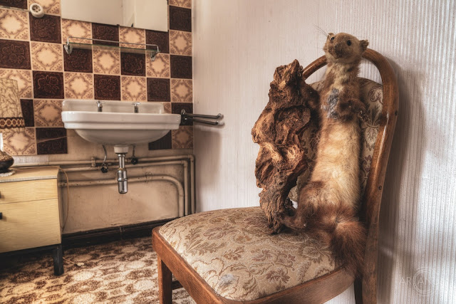 Accordingly, we moved around very carefully - the rain and humidity of the days and weeks before had soaked the wooden floors, so that it felt like we were moving on soft soil or something like that. Some rooms we didn't even enter and only took photos from the doors.