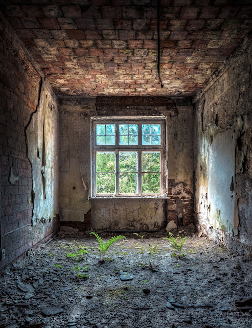 While Jens was showing the place to my parents, I took the opportunity to get a few shots with my camera. It was late afternoon, and the light was really beautiful. This time, I also took a couple of photos of the walls, because I really liked the colors and textures of the decay.