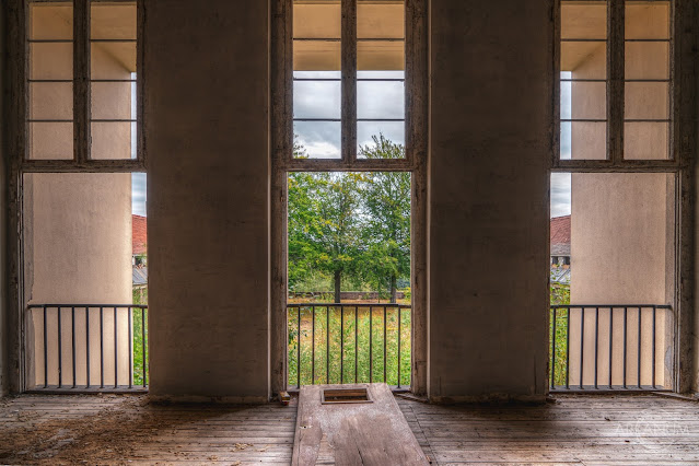 Even though there was no longer any furnishings and the building looked as if it had been at least partially gutted in the course of construction preparations, we could sense its former glory: The main entrance is reminiscent of a festival hall, there is a high, impressive festival room with a stage, and large panoramic windows and other elements have a strong reference to the surrounding landscape.
